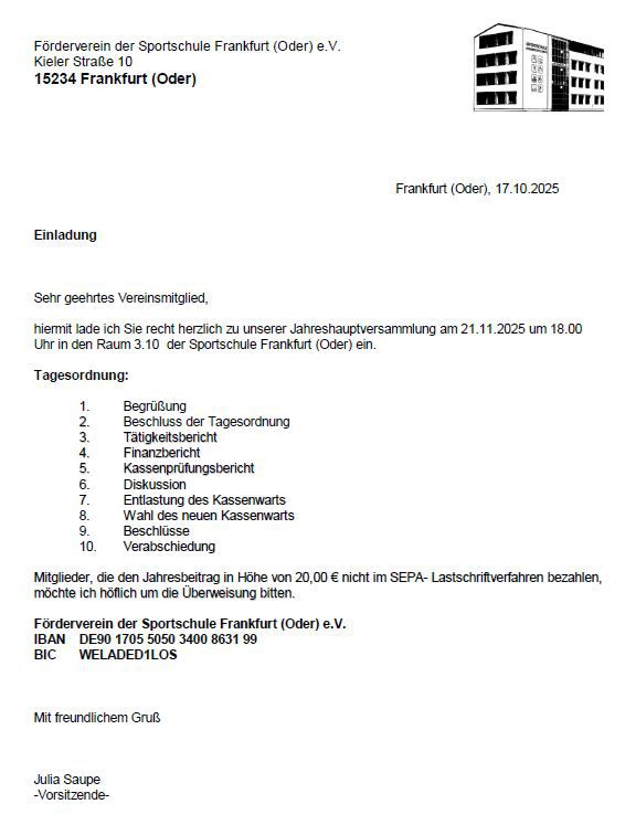 Einladung zur Jahreshauptversammlung des Fördervereins